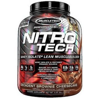 The clinically tested formula of MuscleTech NitroTech Performance Series is ideal to boost the process of muscle building. It is loaded with all the nutrients that are required to trigger protein synthesis and maintain energy for a longer duration. A scoop (46 g) of NitroTech Performance Series provides 30 g of whey protein (a blend of whey isolates and peptides). This is a low carb, low fat, and low sugar formula that is geared to help build lean muscle mass faster. It also contains ingredients like creatine and BCAA that boost the performance for enhanced results. MuscleTech Nitrotech comes in an array of exciting flavours such as Milk Chocolate, Naturally Flavored Milk chocolate, vanilla, naturally flavored vanilla, strawberry, cookies and cream, mocha cappuccino swirl, decadent brownie cheesecake, birthday cake, chocolate mint, snickerdoodle, and chocolate chip cookie dough. Also, there are two sizes available- 2 lb and 4 lb packages. The selection can be made on the basis of one’s daily protein requirement. Isolate protein and peptide blend (whey peptides, whey protein isolate, whey protein isolate 97%), whey protein concentrate, cocoa, natural and artificial flavours, soy or sunflower lecithin, gum blend (cellulose gum, xanthan gum, carrageenan), enzyplex (papain, amylase), salt, sucralose, acesulfame potassium. MuscleTech NitroTech guarantees genuine labelling. Here is the complete nutrition profile of the supplement: MuscleTech NitroTech Performance Series is an ideal supplement to boost training abilities and to give enhanced results. The benefits of including MuscleTech Nitrotech Performance Series in diet are as follows: For best results, MuscleTech NitroTech Performance Series may be used before or/and after a workout. This helps in impeding muscle fatigue and enhances muscle recovery. For those who have a very intense training regime, consuming one serving in between your major meals may be beneficial too. It helps in keeping the muscles fuelled to prevent any chance of muscle breakdown. A scoop of MuscleTech NitroTech Performance Series may be added to 180 ml of water or skimmed milk in a shaker or a glass. While using glass, it is advisable to simply stir the powder (in water/ milk) to make a lump-free drink. Whereas the shaker needs to be shaken well for 30-40 seconds to make a thick and homogenous drink. MuscleTech NitroTech Performance Series provides 30 g of protein per serving (46 g), which is derived from whey peptides and whey isolates. These protein sources are easily absorbed by the body to give the best results faster. MuscleTech Nitrotech guarantees the cleanest source of proteins that are filtered using a multi-phase filtration process. This breaks down the protein into easy to absorb particles and also promotes better digestion. The high protein concentration and the low carbohydrate content of this formula make it appropriate for a keto diet. Each serving (46 g) contains as little as 4 g of carbs and up to 30 g of protein. Yes, MuscleTech Nitrotech contains ingredients like creatine and BCAA that improve performance tremendously. They help the body to produce more energy to support long training hours. In addition to this, it delivers the advantage of faster muscle recovery for reduced soreness and stiffness. One scoop of MuscleTech NitroTech can be mixed with 180 ml of water or skimmed milk in a protein shaker or blender to make a thick and lump-free shake and can be consumed before/ after a workout or in between major meals. For most healthy individuals, the requirement lies between 0.5 to 2 scoops of MuscleTech NitroTech per day. However, this requirement may vary as per individual essentials and targets.
