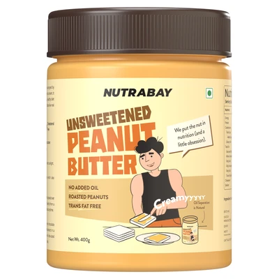 Nutrabay Unsweetened Peanut Butter - 400 gm (0.88 Lb), Creamy